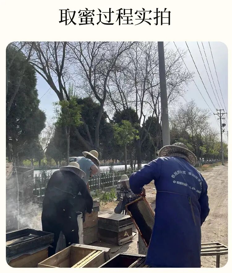 看看这个取蜜过程的实拍图!整个过程无化学添加、无浓缩加工,更无掺假操作,每一滴都源自蜜蜂自然酿造。