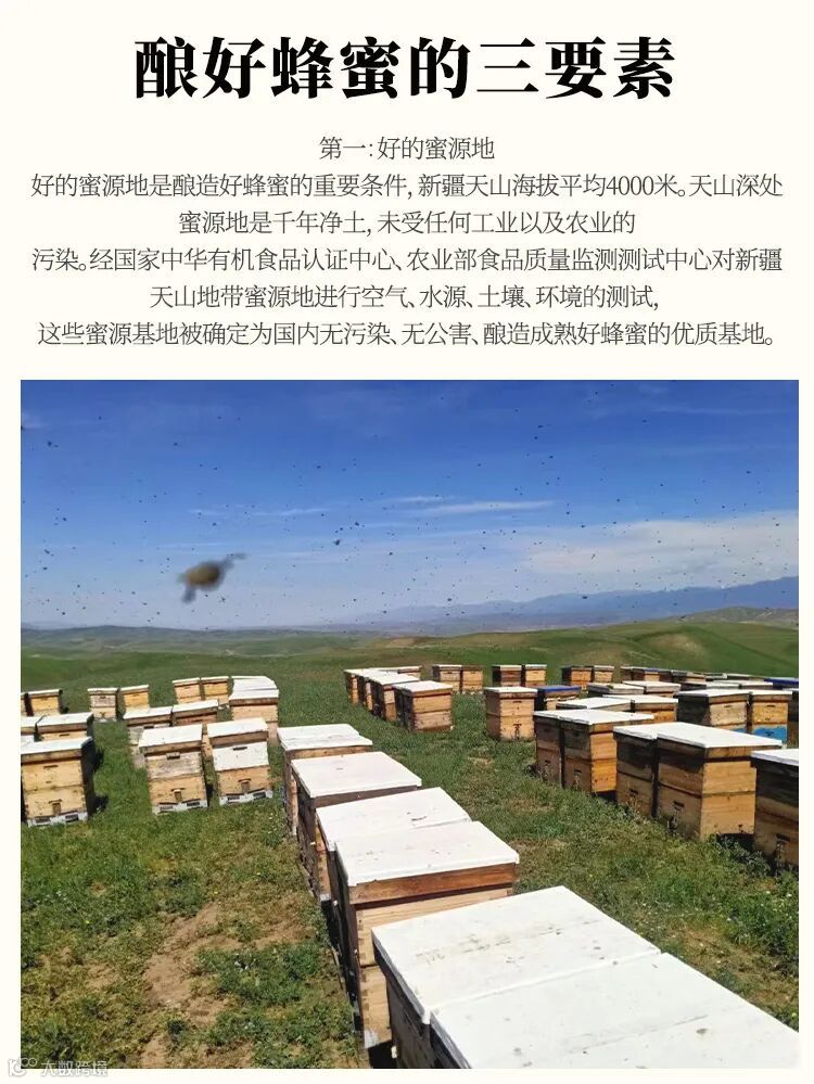 而这款新疆天山雪蜜就是酿成好蜜要素的典范,每一瓶雪蜜,都是自然、时间与良心共同打造的甜蜜精品 。