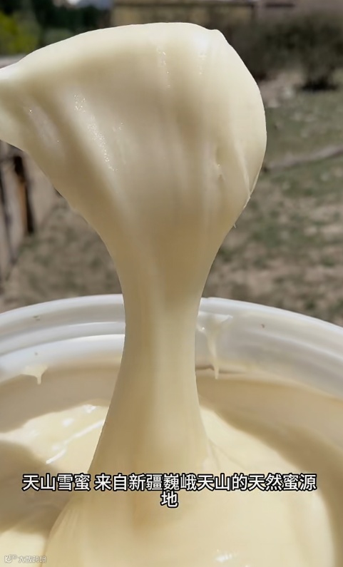 打开盖子的瞬间,天山雪蜜宛如凝脂,细腻的结晶好像冬日初雪~