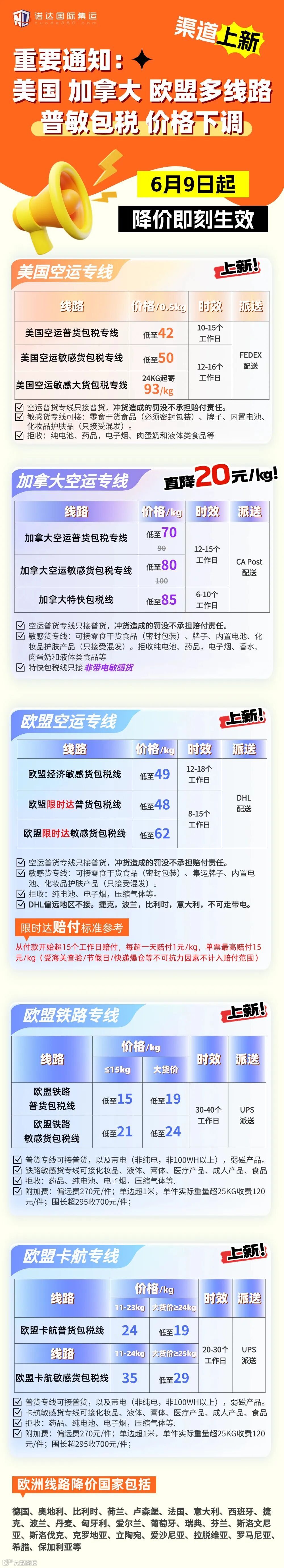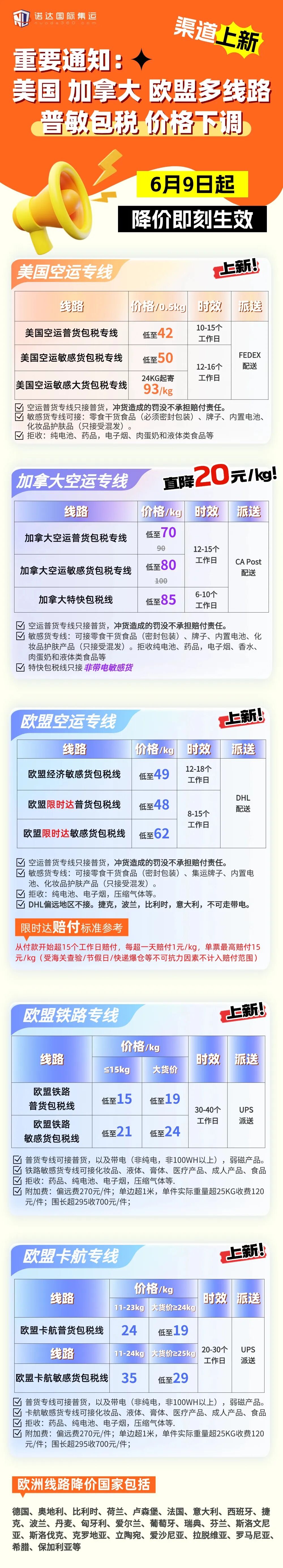 诺达国际集运【美欧加】线路大降价!还能领60元无门槛券!