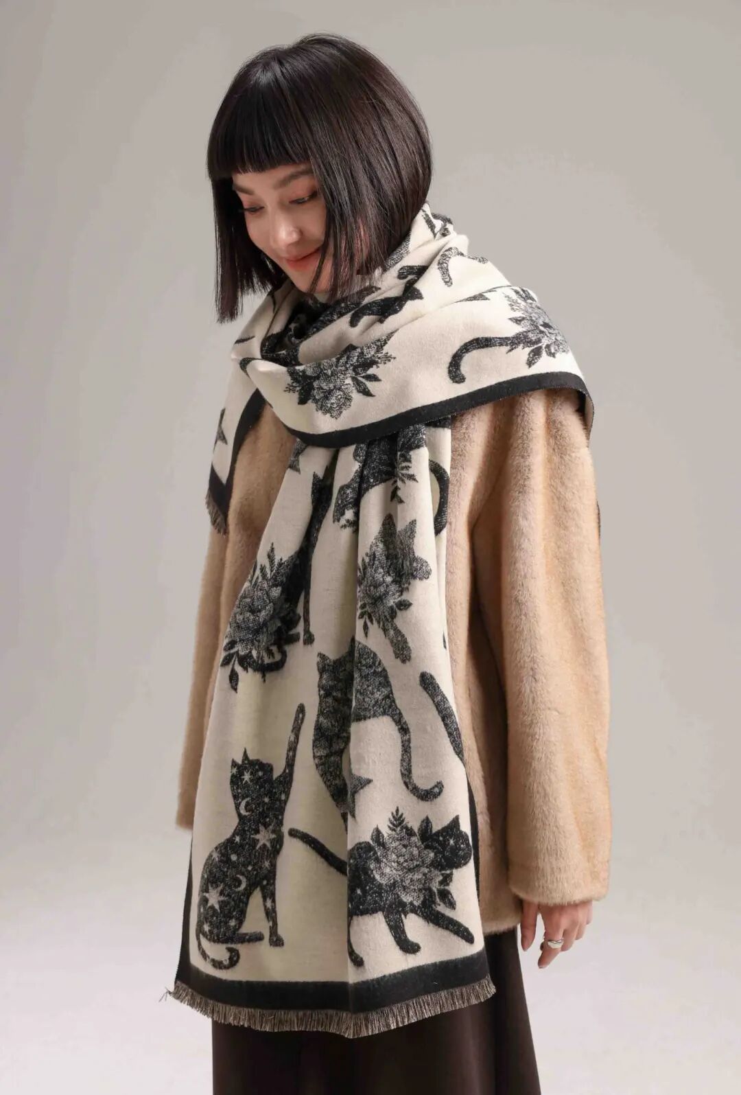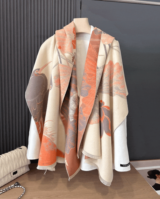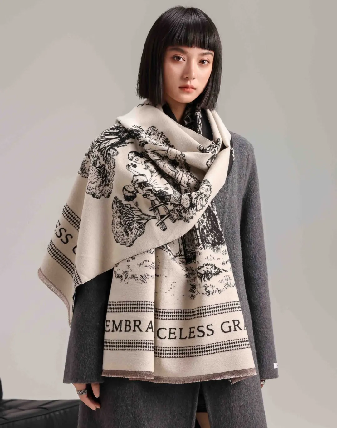 可以披着,也可以简单围起,哪怕只是随意搭在肩上,也能成为秋冬穿搭中“轻松赢很大”的搭配亮点。