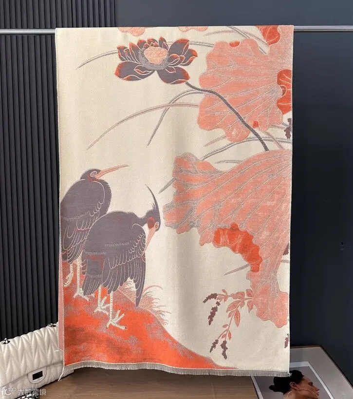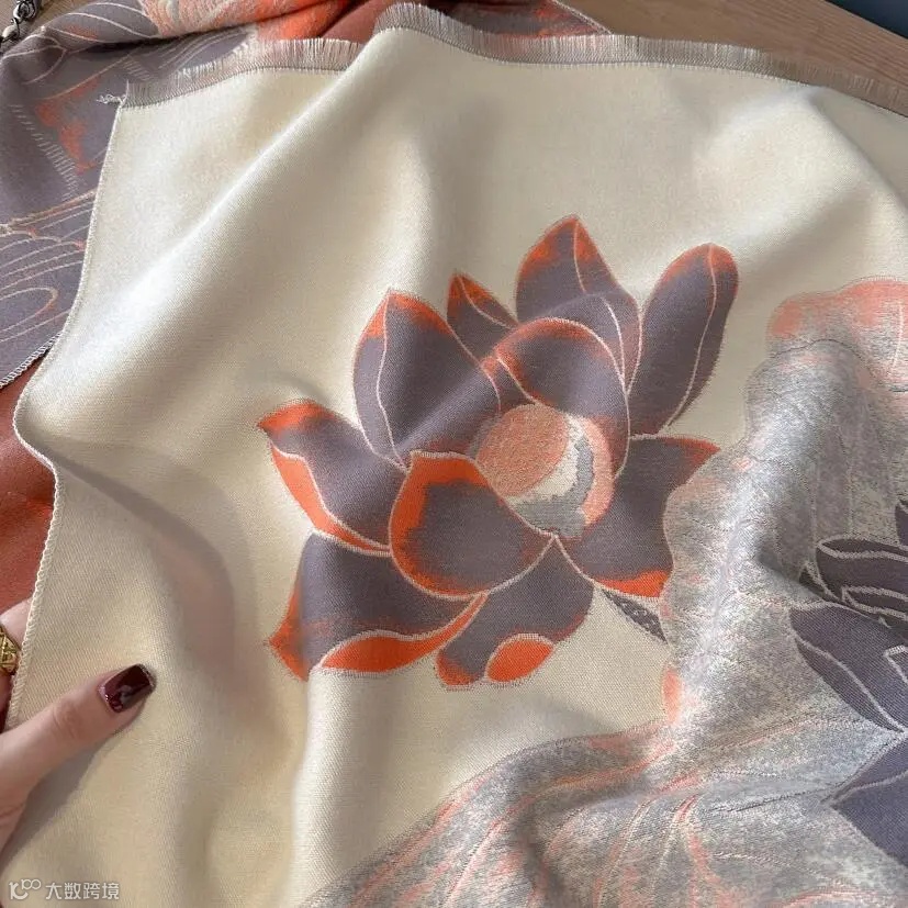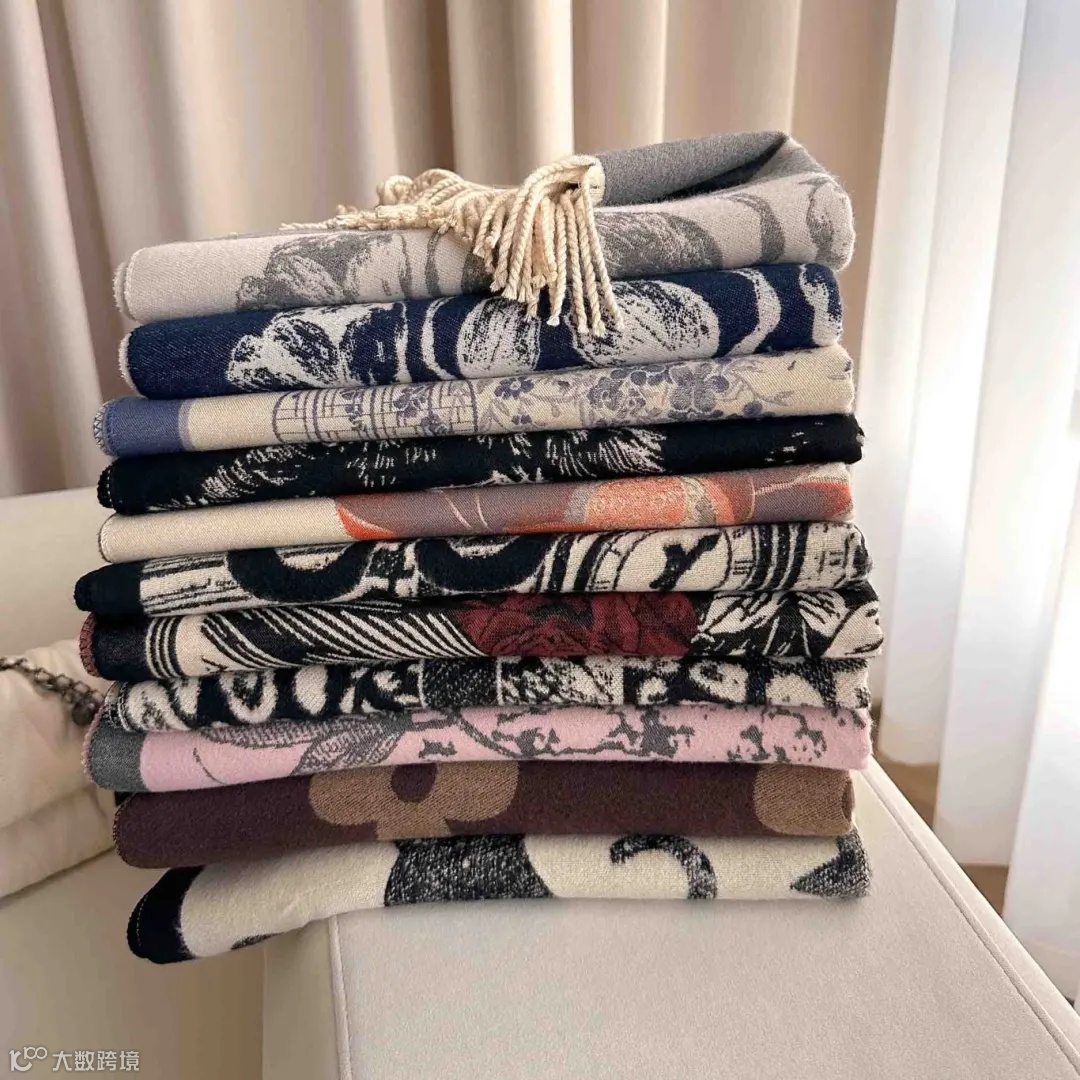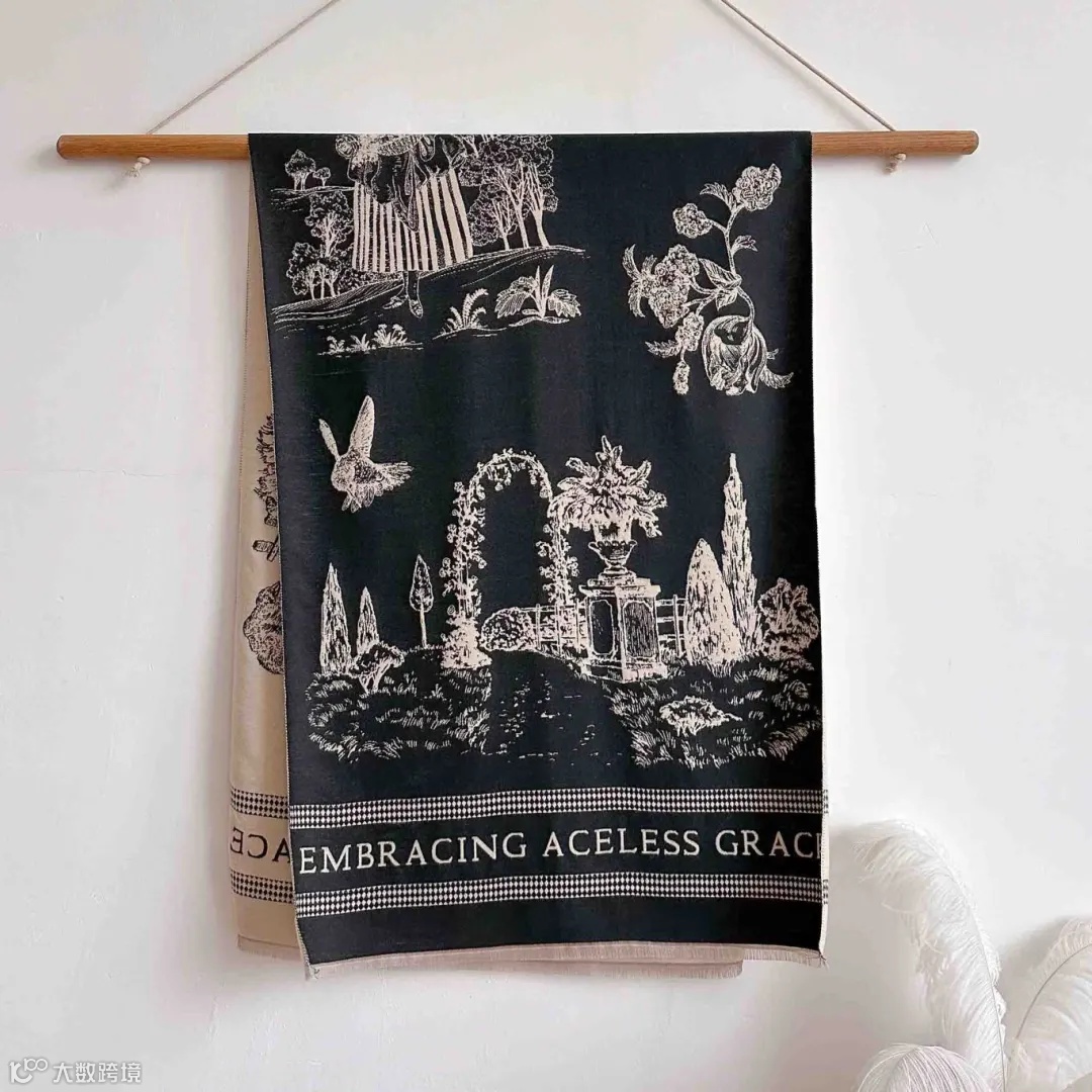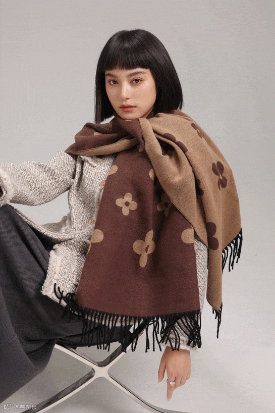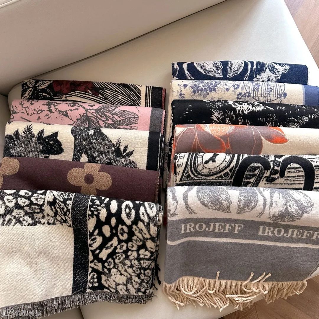 这款围巾采用市面上少有的重工三打提花工艺。