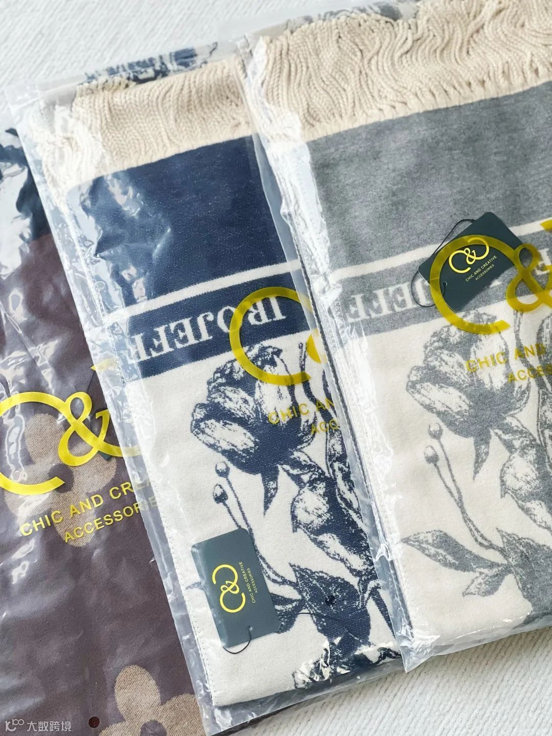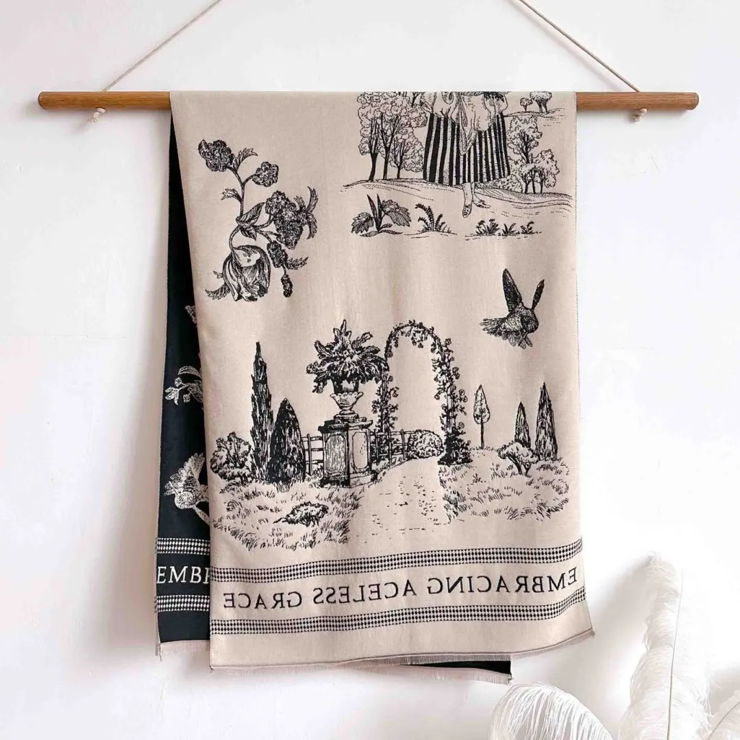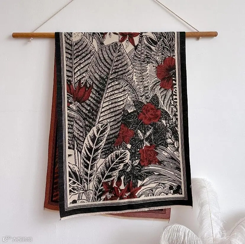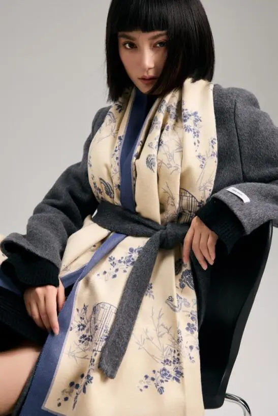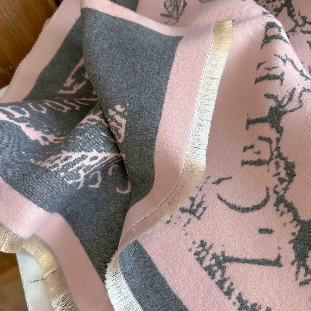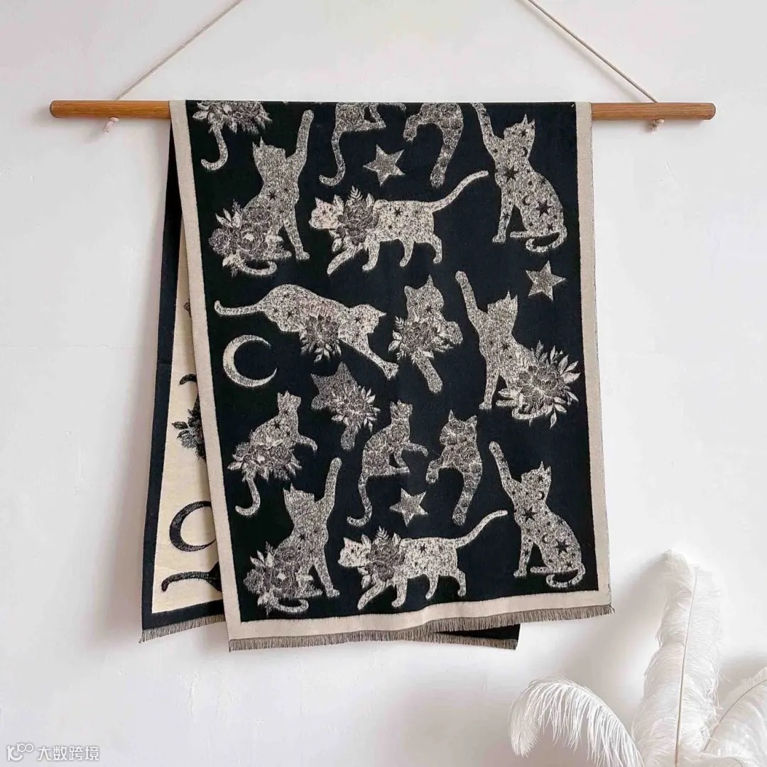 这款围巾采用市面上少有的重工三打提花工艺。