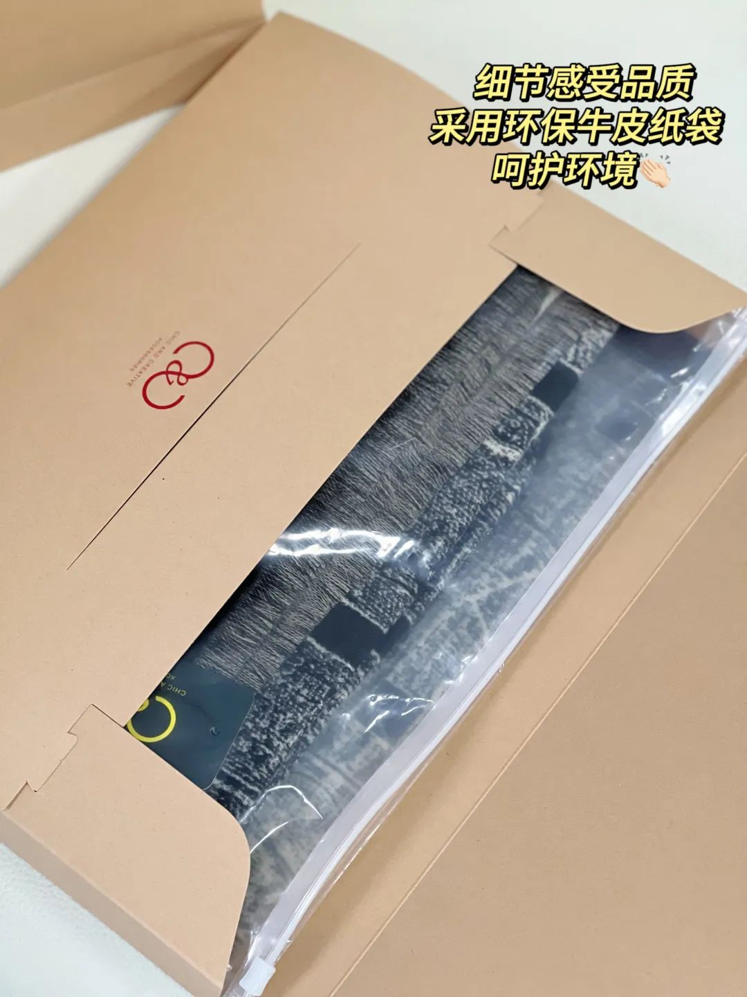 包装盒一如既往地走精致简约路线,牛皮信封式包装+手提袋,满满的大牌质感,送人也非常合适!