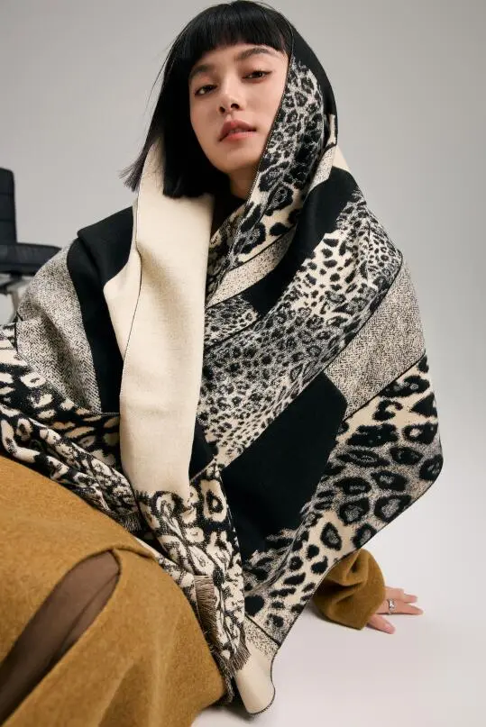 长度上是65(60)*180CM超大围巾,可当围巾、披肩、甚至还可当盖毯,两面可搭,真的非常实用~