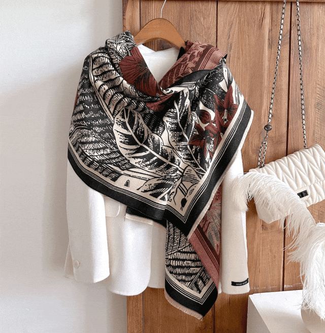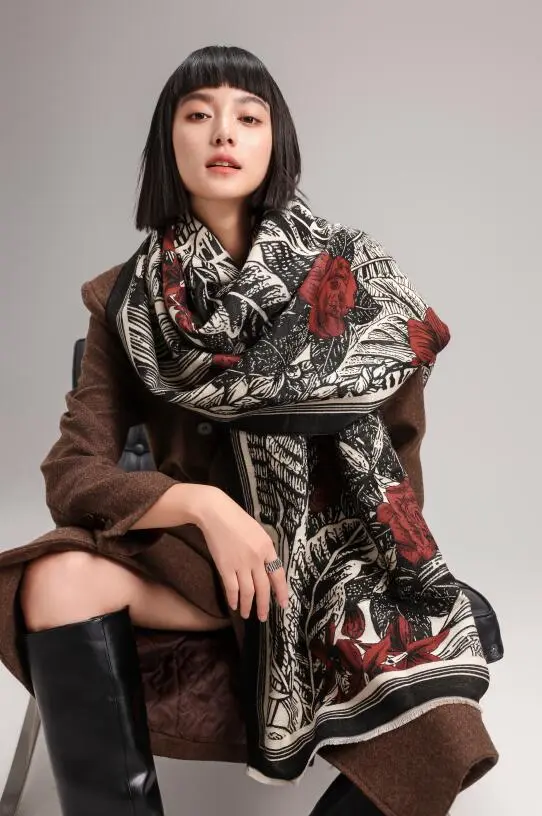 玫瑰印花又带足了女人味,讲真的,女领导、女强人一定要来这么一条围巾!保证你气场全开的同时又女人味满满~