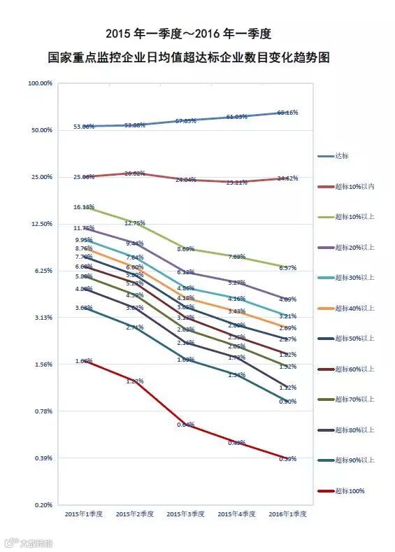 二是通过加强监管,严重超标企业逐步减少,去年四季度通报严重超标的有130多家,到今年一季度就剩下95家,减少了26.92%。