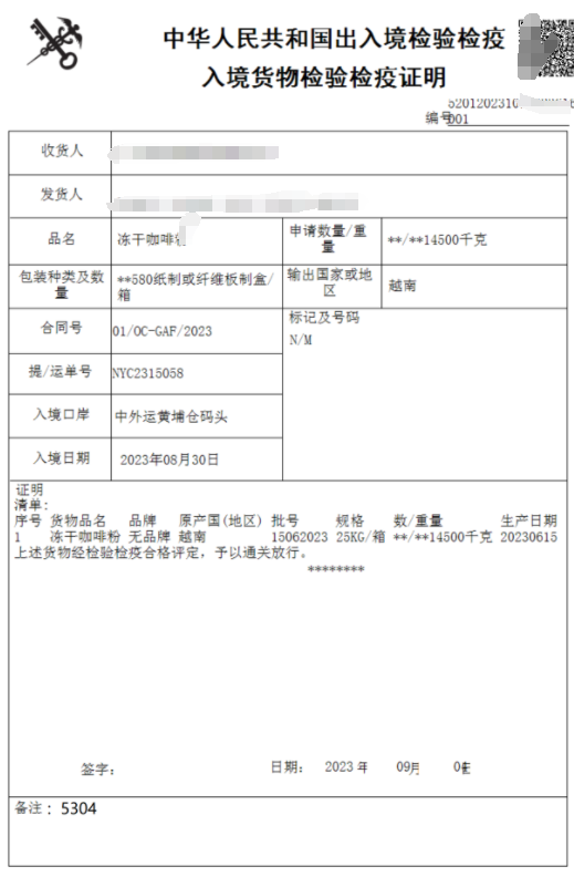 这款咖啡可是100%阿拉比卡咖啡豆,越南进口咖啡豆,还有海关检疫证书,这可是白纸黑字千真万确,造不了假噢~ 喏!这就为大家附上。↓