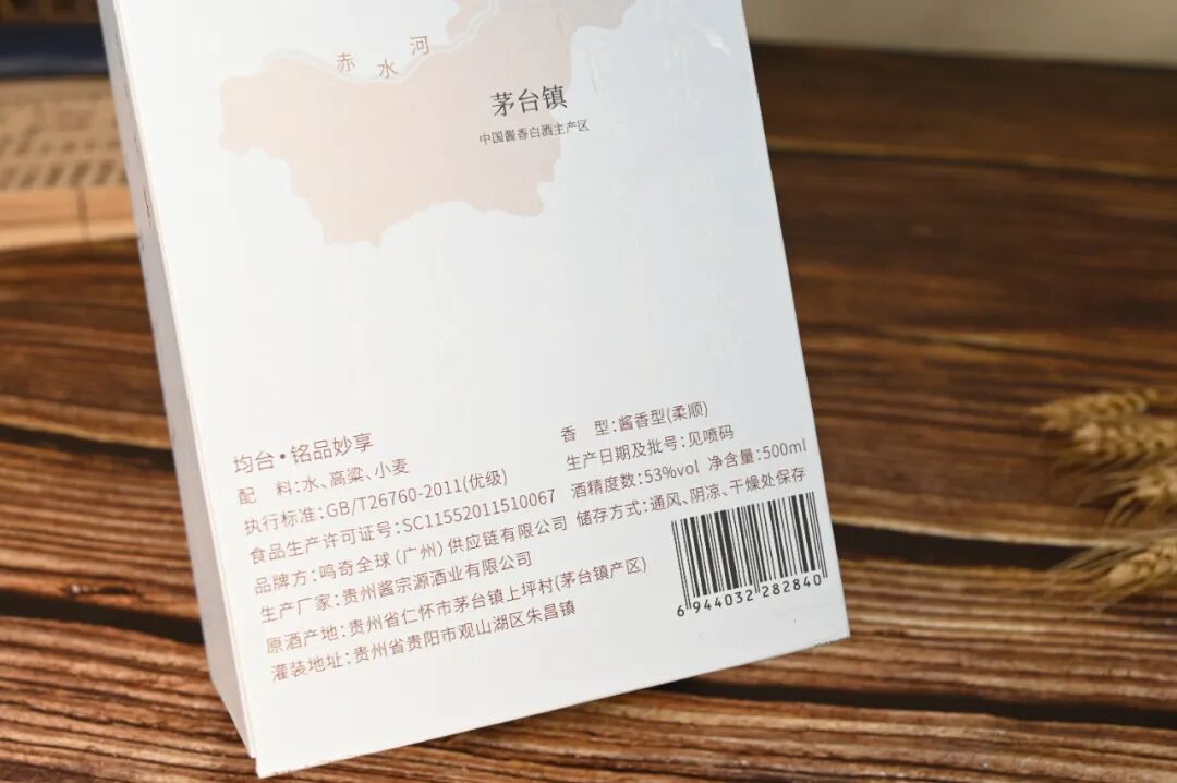 盒身上清晰标注着,产地来源于“茅台镇上坪村”,GB/Y26760-2011(优级)的纯粮固态发酵工艺,懂酒的人一看就明白价值,绝对让你有面子!