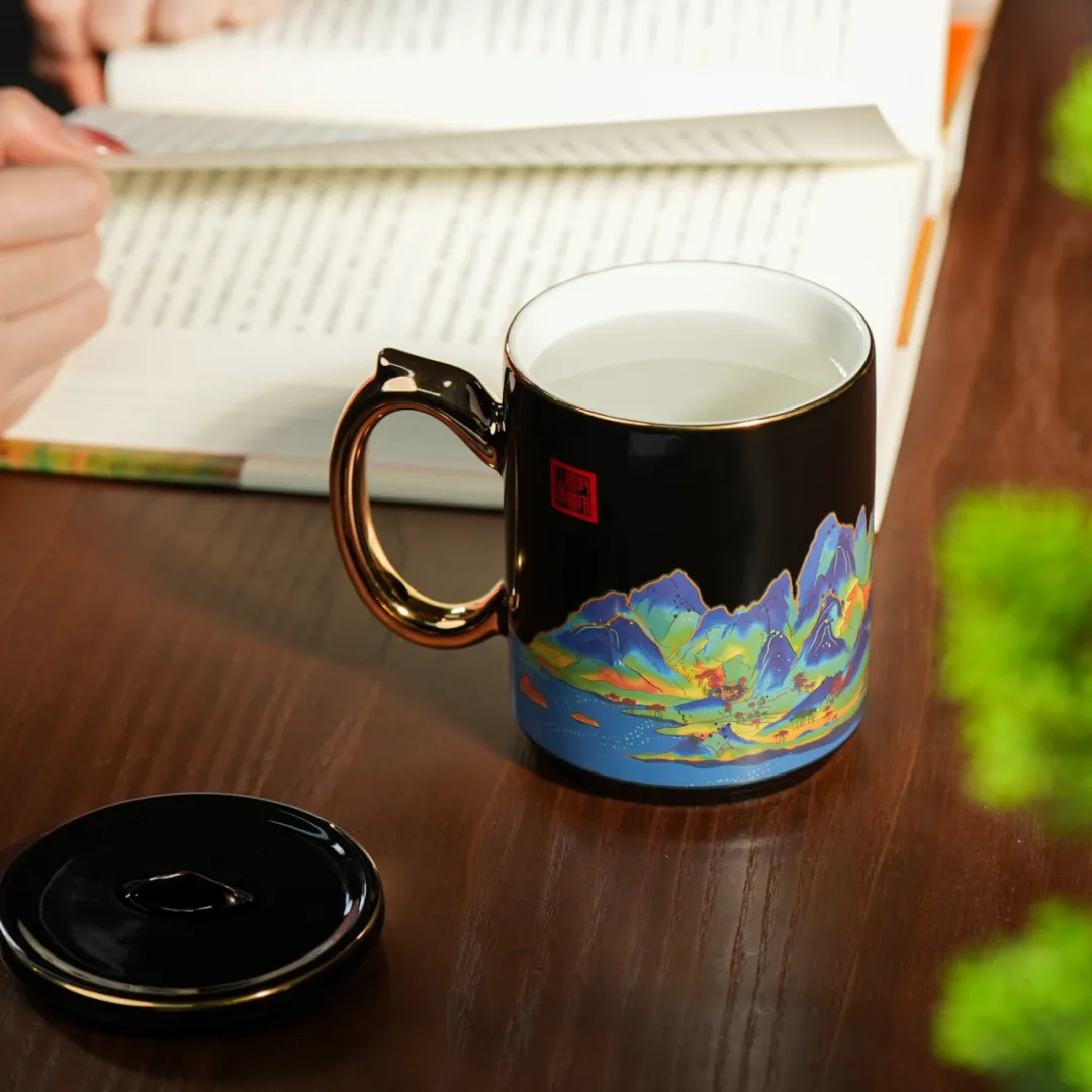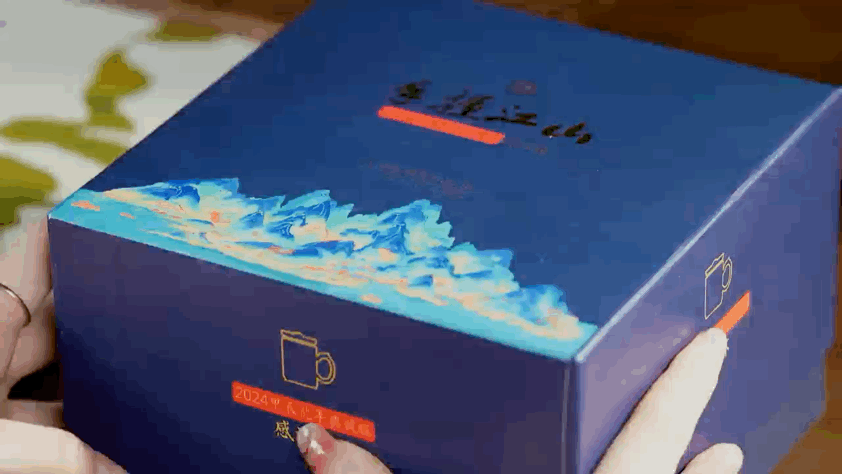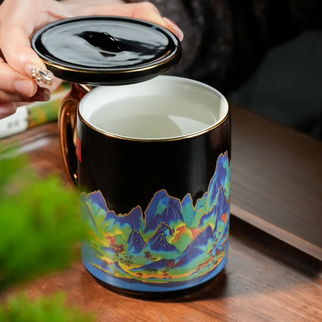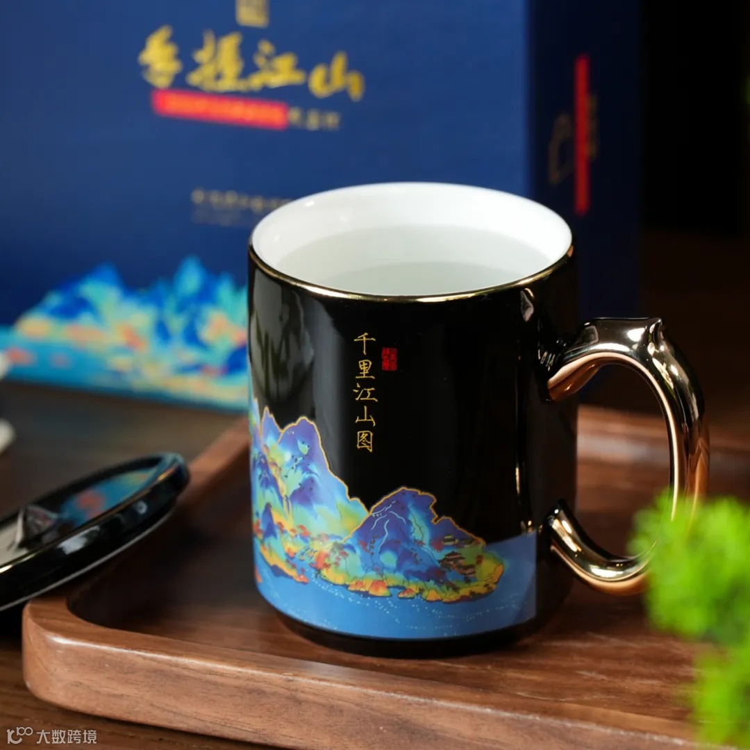 2、暗藏局部千里江山图,遇热即显,350ml大容量,精美礼盒包装,宜礼宜藏。