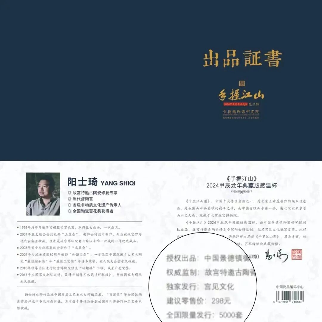 《手握江山》2024甲辰龙年典藏版感温杯,限量发行5000套,每套均配有出品证书,喜欢的朋友一定要认准官方正品。