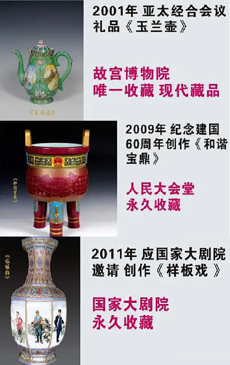 阳士琦的作品在中国历届工艺美术大师精品展、“百花奖”等全国性陶瓷作品评比大赛中多次问鼎折桂,连续五年获得“中国收藏十大艺术瓷”奖项!