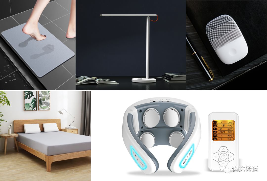 浴室硅藻脚垫、Dibea扫地机器人、小米智能台灯、九阳豆浆机、料理机、homeleader颈肩加热按摩仪器、数据线整理盒、乳胶枕、羽绒大衣、k歌神器家用麦克风、气垫BB、小气泡洗脸仪。