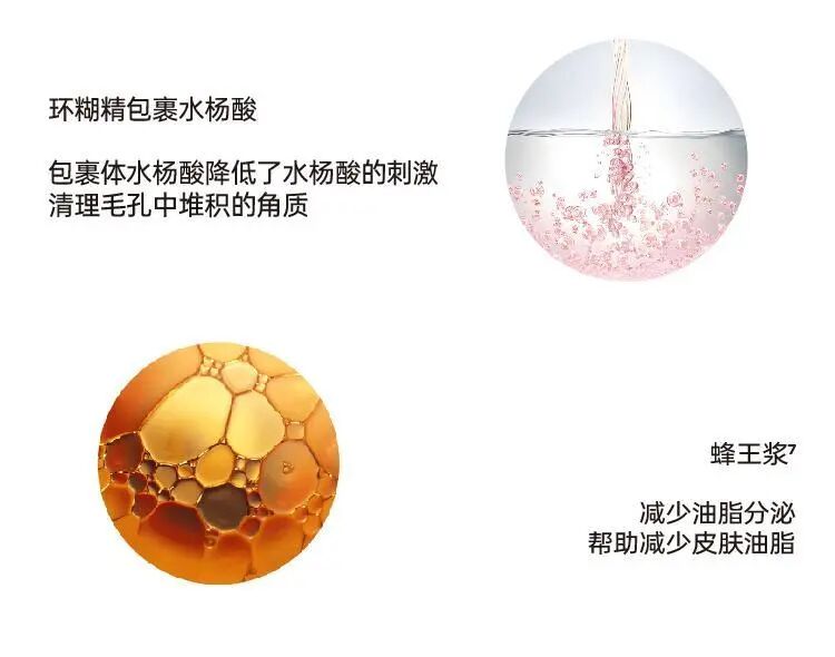 最后就是来自水杨酸+蜂王浆控油因子两大辅助成分的助力。