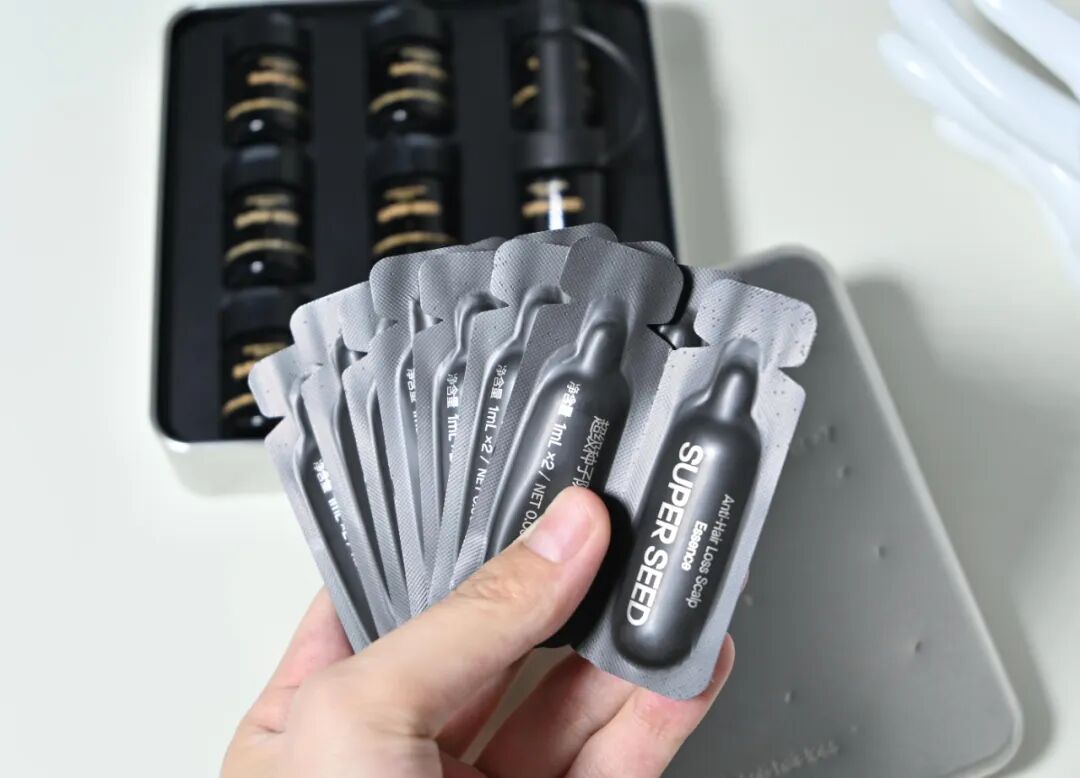 掉发届尖子生的它,一盒里面有 7 小瓶,每瓶足足 4ml 可以用上2天,算下来的话两盒刚好可以用一个月。