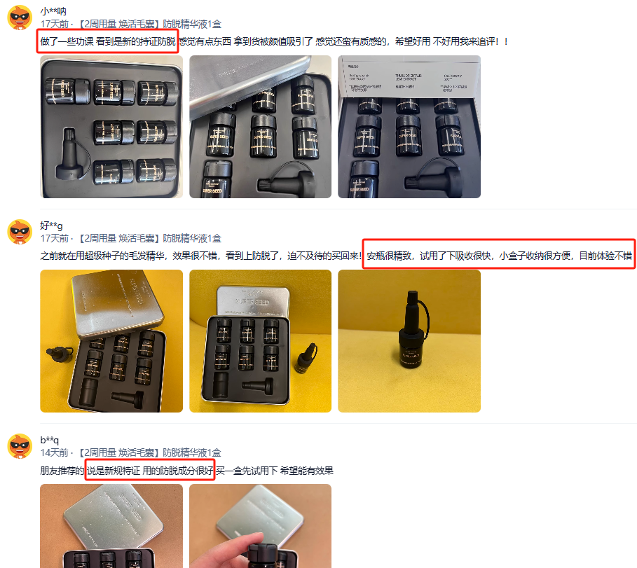 不过小编可不是轻易放弃的人,为了重回年轻时的发量巅峰,我拔草了好几款防脱产品,终于找到了拥有防脱特证的——超级种子防脱头皮精华液。