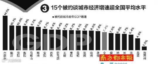 除东三省省会、海西州、保定和吕梁以外,15个城市的GDP年增速均高于全国7.4%的水平。其中:超过10%的有3个,占比14.3%.分别是六盘水,惊人的14.1%,约谈后得整改备受关注的临沂,10.1%,以及资阳的10.0%.