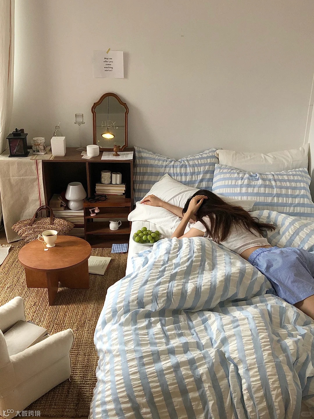 在布置房间的时候,我就发现:颜值和舒适度并存的床品,会奠定整个卧室的氛围。