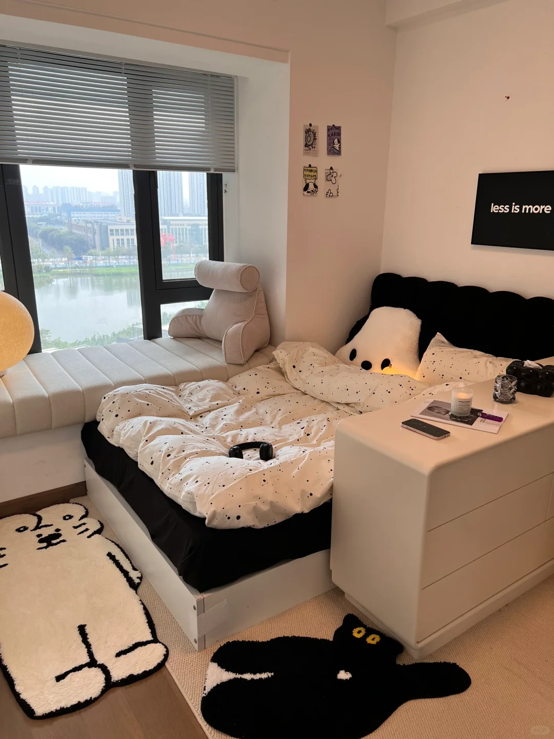 光有颜值也不够,床铺凌乱,床品太花里胡哨的话,也会让整个房间缺少温馨和氛围~