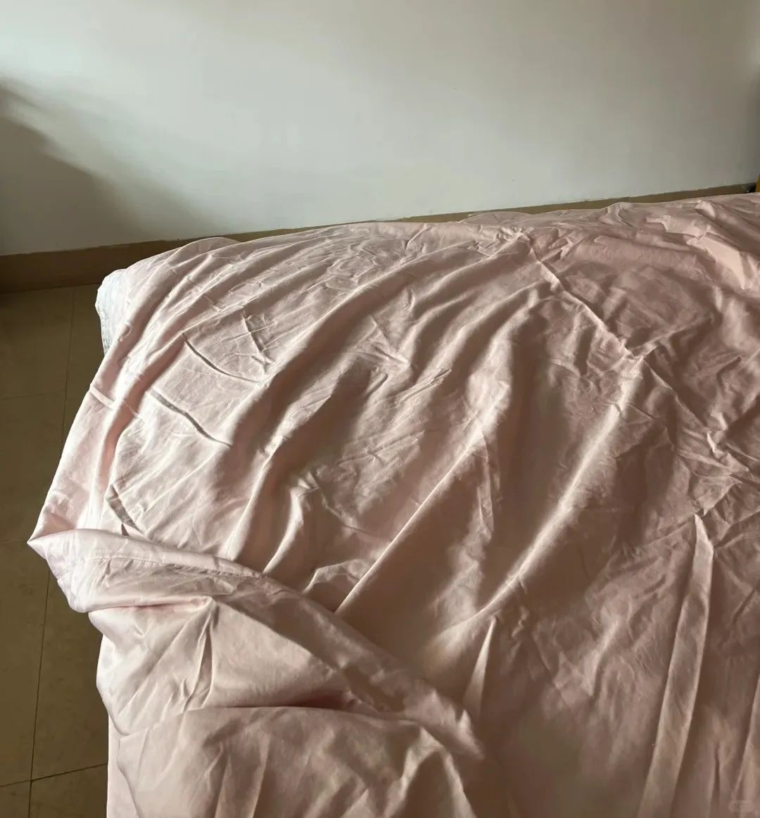 睡前床单铺得整整齐齐,一觉醒来,就已经缩在一边了。(急急忙忙上班,根本没时间整理)