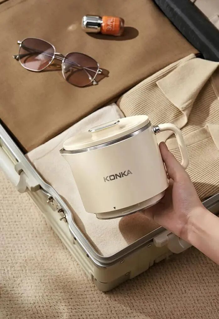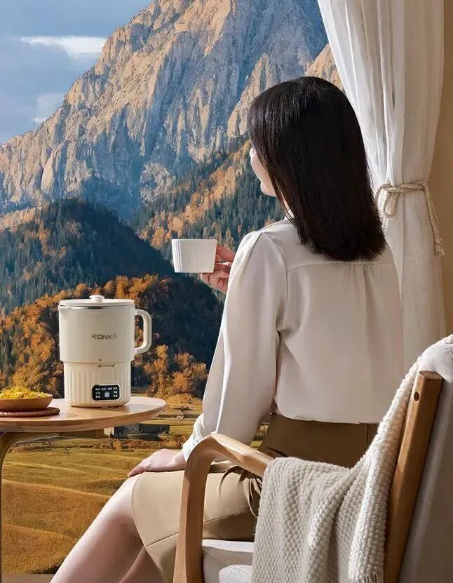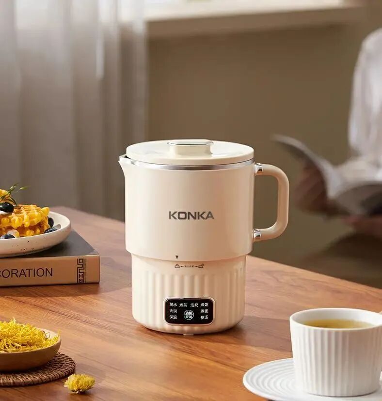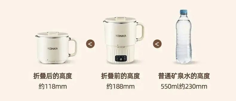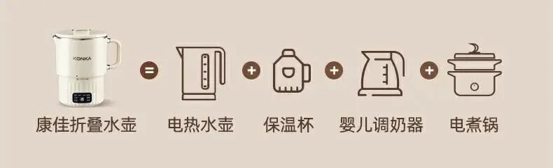 一个康佳折叠水壶相当于电热水壶+保温杯+婴儿调奶器+电煮锅。