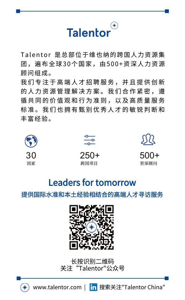 Talentor是全球化的人力资源集团公司。我们提供国际水准和本土经验相结合的高端人才寻访服务,遵循共同的职业理念和高质量服务标准。