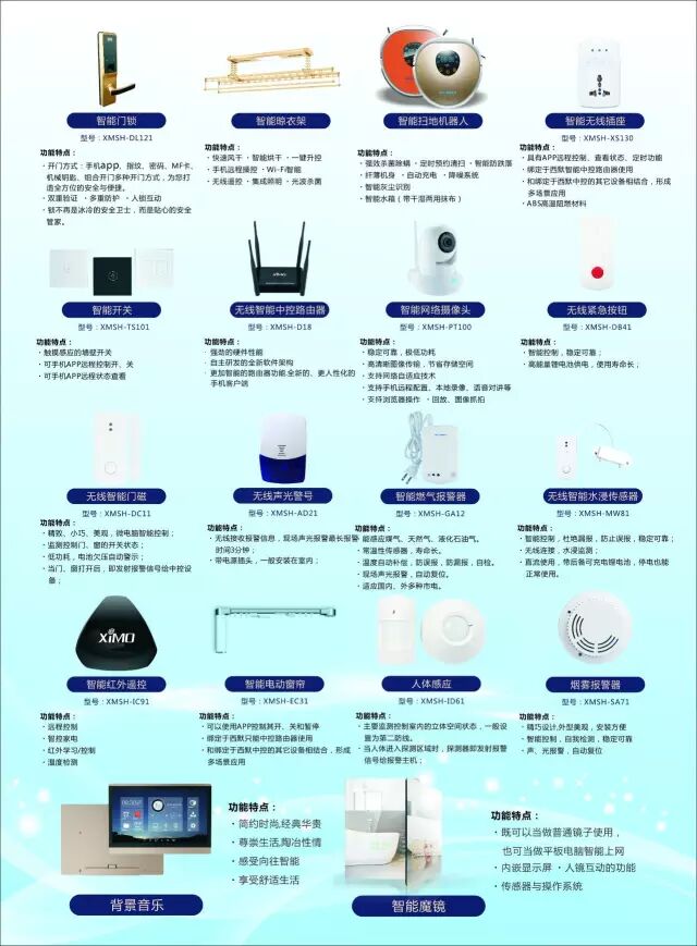 上述产品包含:全宅WIFI覆盖+智能灯光系统+智能窗帘系统+智能家电控制+家庭安防系统+背景音乐系统!所有单品可以实现互联互通,相互联动!