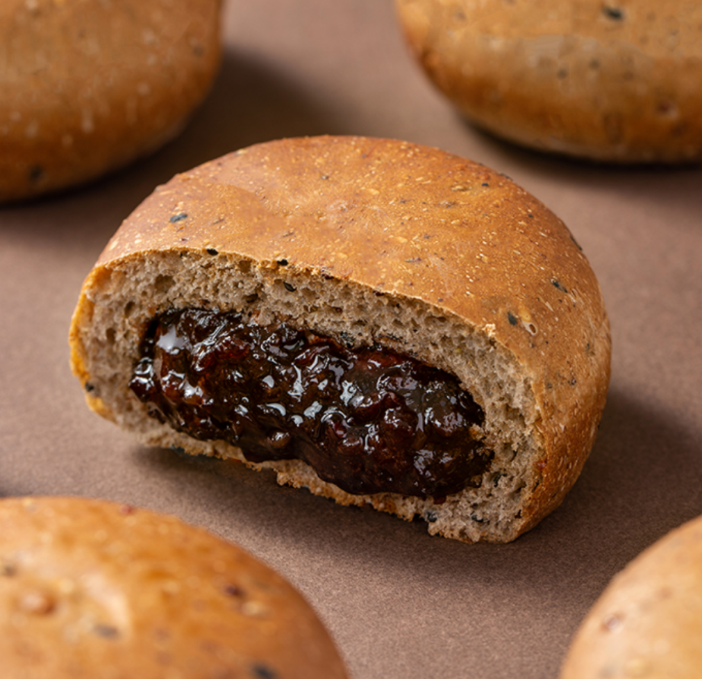 每 100g 五黑全麦夹心欧包膳食纤维含量 ≥ 7.8g,真正的高膳食纤维欧包,越嚼越香。