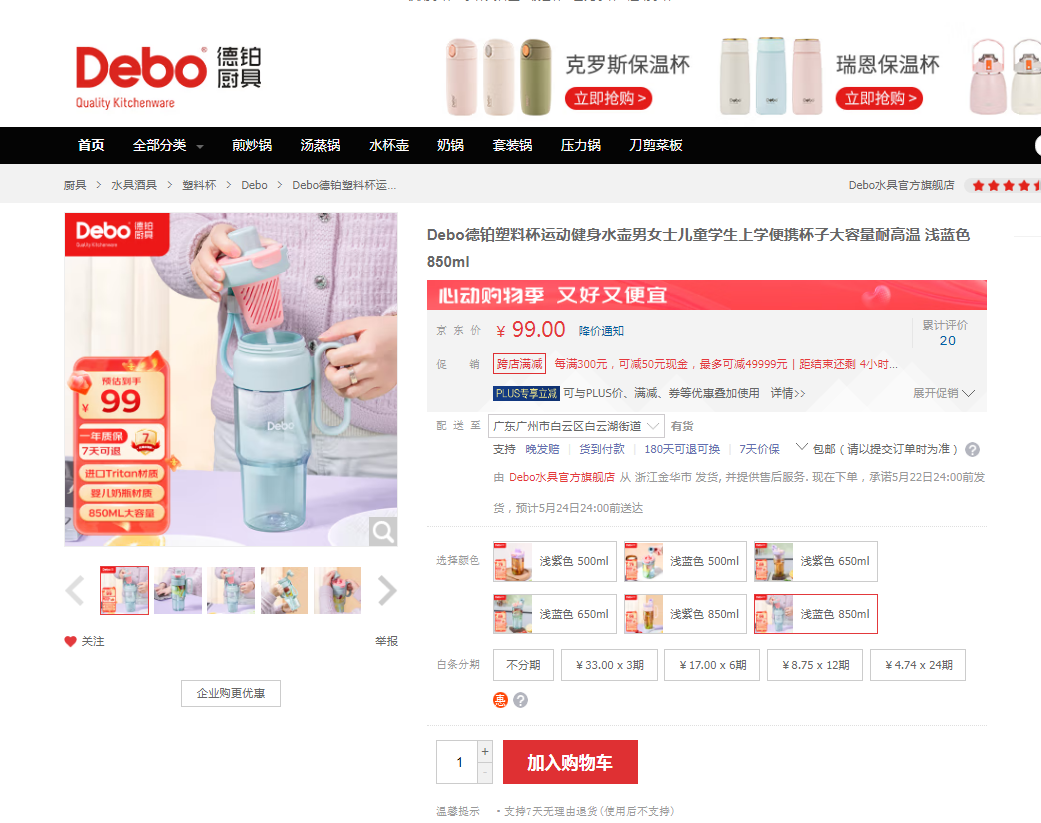 850ml 款 59.9 元;500ml款仅售 39.9 元 。