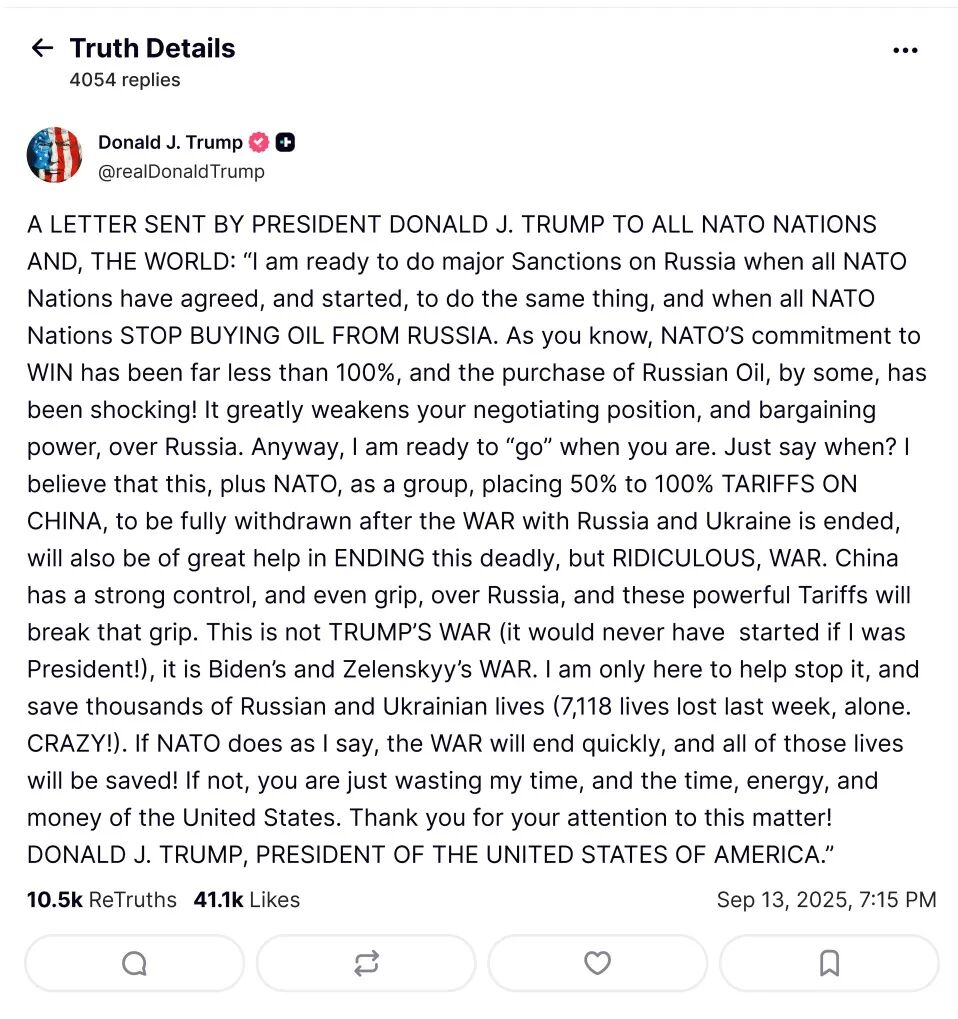 近日国际舆论再度聚焦美国与中国之间的贸易与关税摩擦。有多家权威英文媒体报道,美国总统特朗普呼吁北约成员国 (NATO) 、G7 等国家对中国及印度等国家因购买俄罗斯石油而加征“二级关税”(secondary tariffs) ,可能高达50%–100%。这些提议旨在通过经济压力阻断俄罗斯获取战争资源资金。