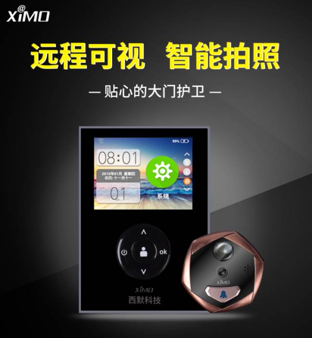 西默智能猫眼集成了猫眼和门铃的功能,克服了传统猫眼上述的所有弊端和安全隐患,并支持无线可视高清通话,增加了监控方面的作用。