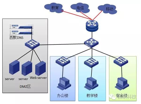 未部署西默智能DNS之前,学校使用自己搭建的DNS对内提供递归解析,对外提供权威域名解析。但是自行DNS系统需要使用命令行进行操作,必须由熟悉命令的专业人员才能进行操作,增加了网管员负担,并且容易操作失误导致学校网站访问失败。自行搭建的DNS除了管理不便外,还存在性能低、系统响应速度慢、安全性低等一系列问题。