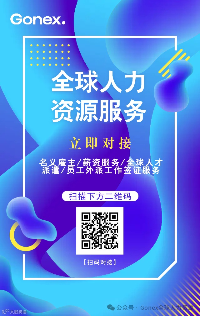 想要了解更多全球人力资源管理的专业解决方案,欢迎扫描下方二维码联系Gonex,携手推进出海新篇章。(不接受个人出国需求、不接受无业人士申请工签)