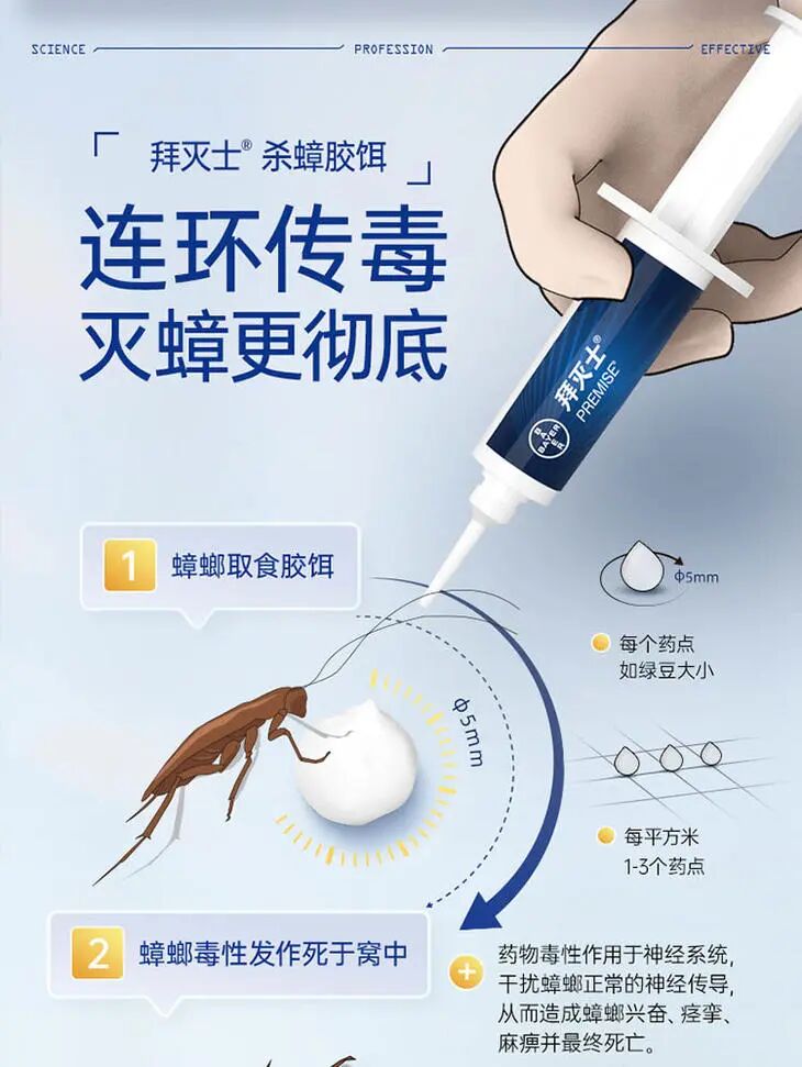 轻松实现,蟑螂一窝端,这就是——来自德国拜耳的拜灭士杀蟑胶饵。