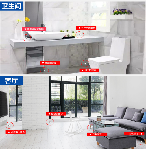 客厅、卧室、卫生间的各种角落,家具、电器底下,还有各种窗台、地板、马桶缝隙也不要放过。