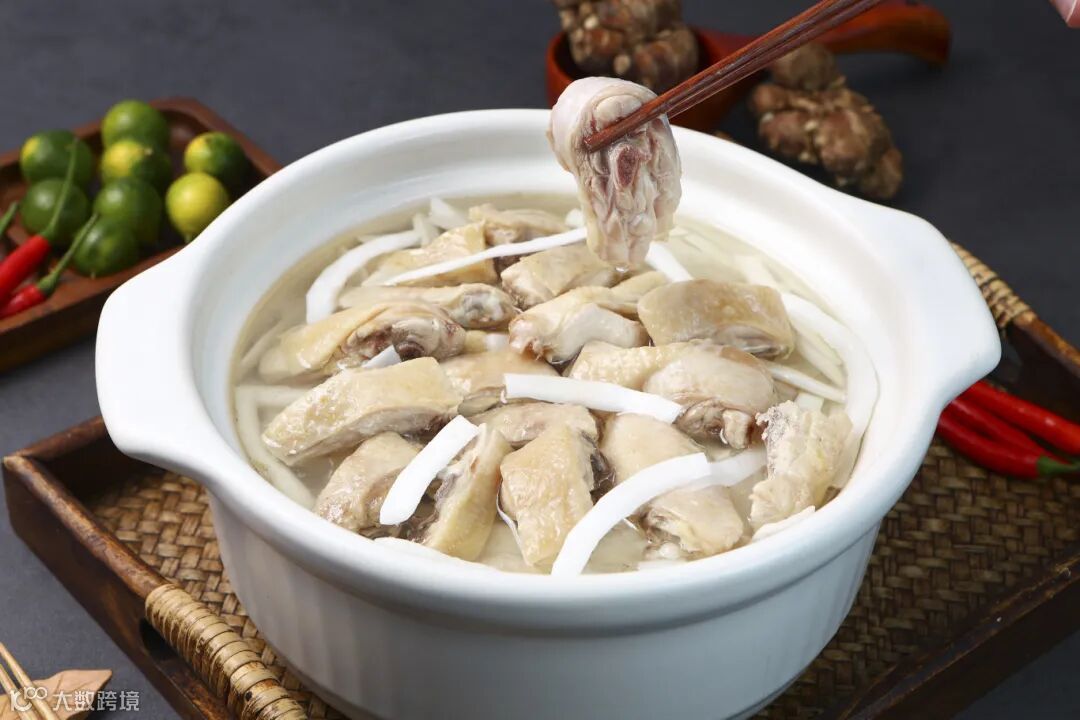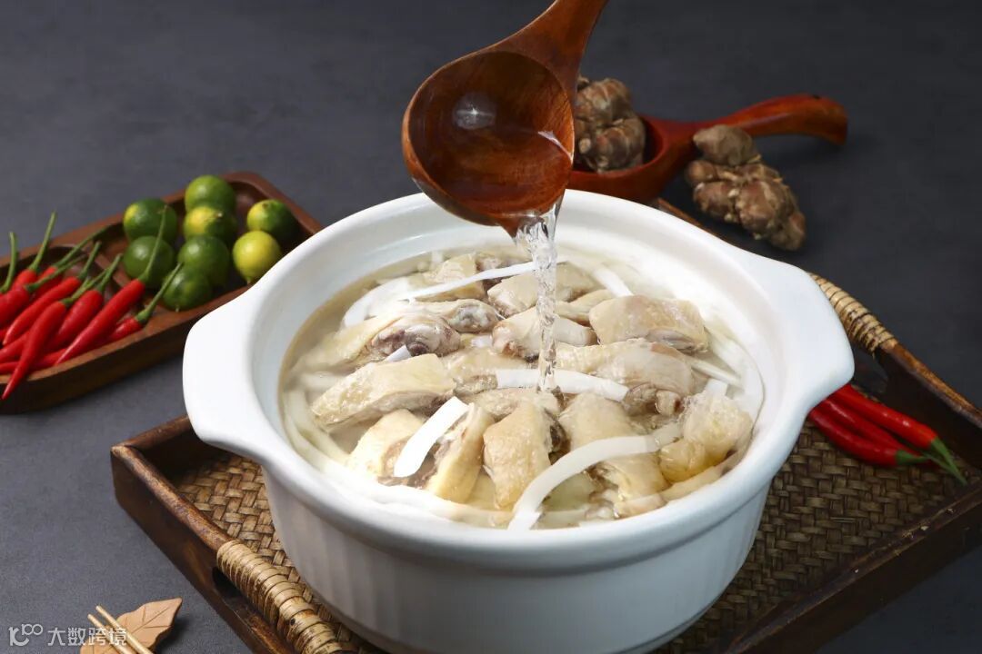 椰子鸡好吃与否,其中的门道在于选用的鸡肉鲜不鲜嫩。