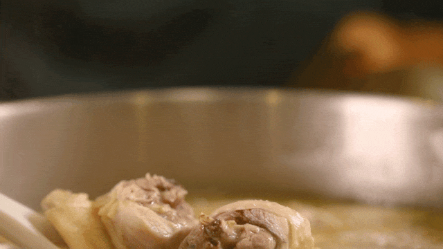 热腾腾的鸡肉新鲜出锅,白白嫩嫩的,肉香超浓郁,椰气弥漫,完全吸收了汤底的精华。