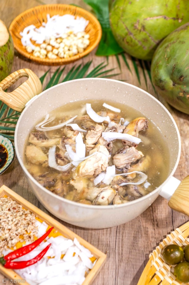 鸡肉滑嫩鲜甜 椰子汤清香甘甜