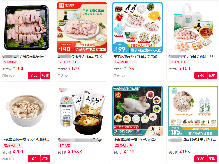 到某宝上搜一搜椰子鸡套餐,随便拎一款出来价格都要150+。