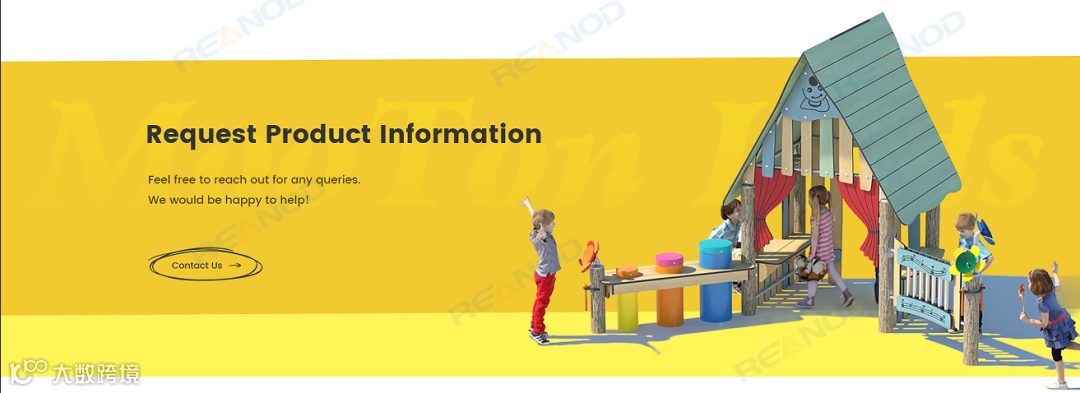 点开网站,可见到颜色鲜亮的Banner图。在蓝天白云下,是黄色调为主的游乐设备,一下子点亮了整个视线。加之设备上有正在玩耍的儿童,如同产品的最佳代言,整张图片都很容易调动老外的快乐情绪。