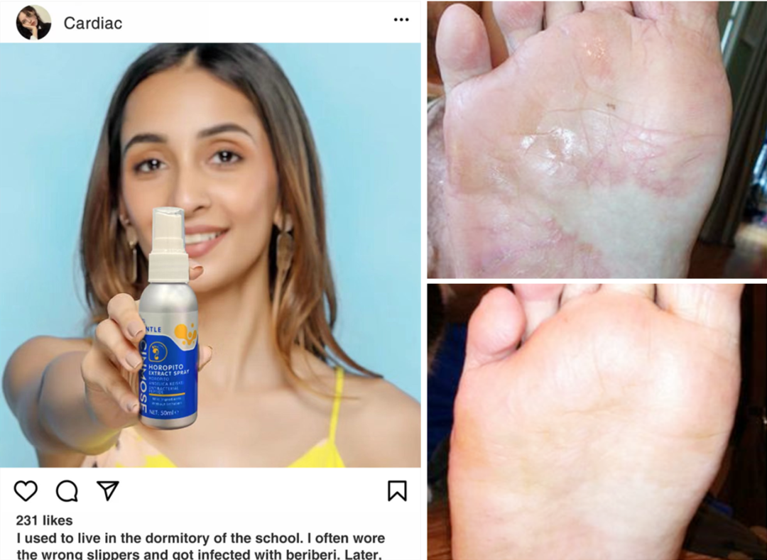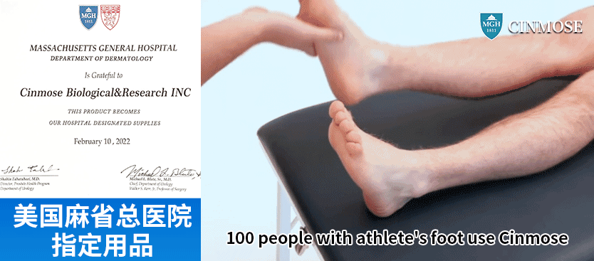100 位足部患者使用 Cinmose 足立清,3 天内,98% 的人脚臭/痒消失,2 周内,足部皮肤均恢复完整健康,还因此成为该院指定足护品!
