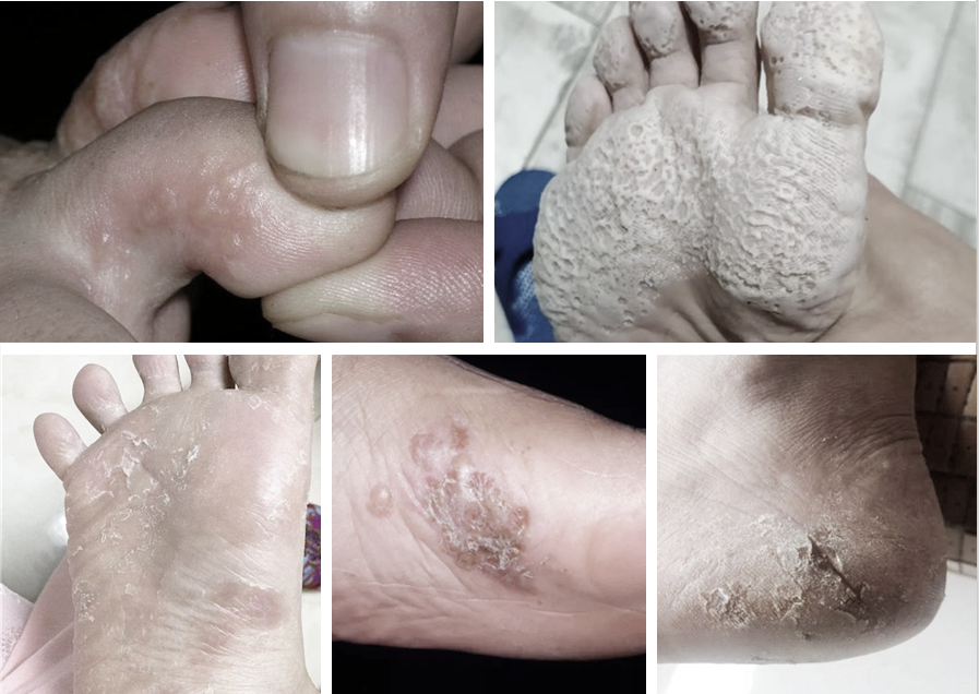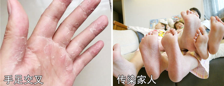 真箘不仅迫害自己的双脚,通过抓挠,还会交叉感染给双手。