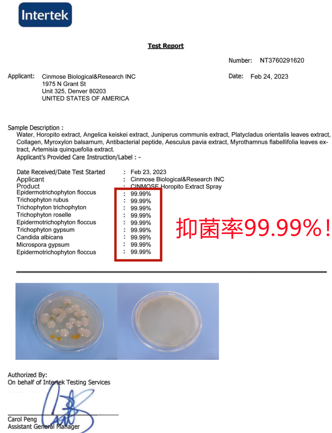经第三方权威机构检测:24 小时内溶箘率高达 99.99%!