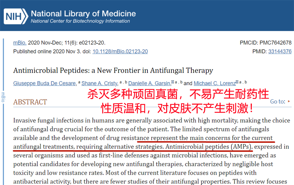 AMPs 灭箘抑制肽能杀灭多种顽固真箘,耐葯性低,抑箘效果长久可靠!且性质温和,对人类肌肤几乎无刺激!