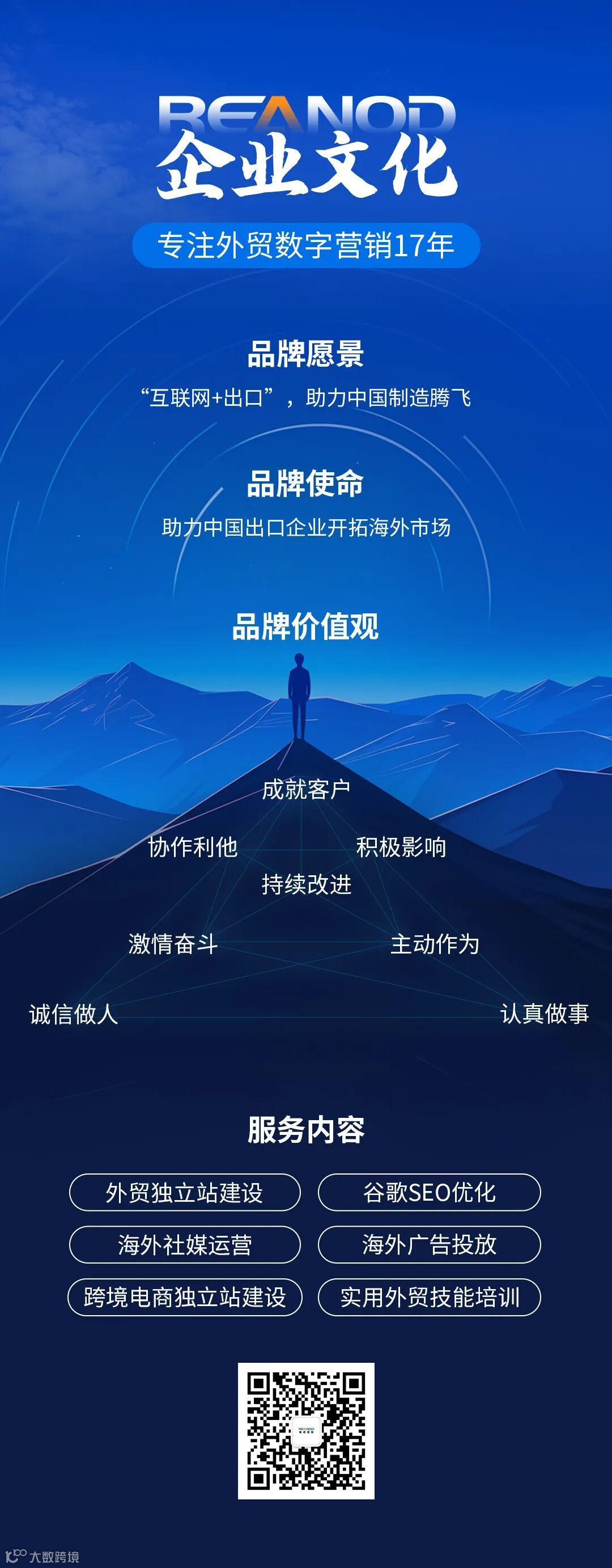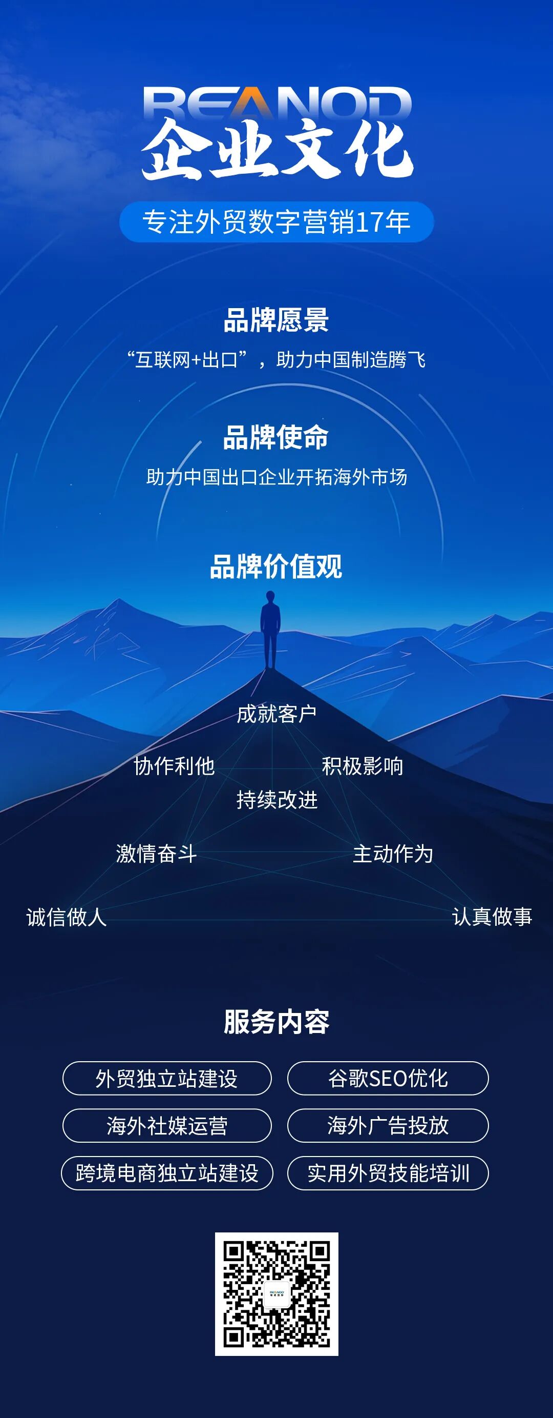 17年来,瑞诺国际一直以技术为驱动,为外贸企业提供海外整合营销、出海品牌推广、B2B官网建设、B2C跨境独立站搭建、跨境电商培训等一站式海外数字营销解决方案,累计服务企业29856家,为所服务企业带来年贸易额254亿+美元。在广州、深圳、东莞、佛山、宁波、苏州、济南、石家庄、唐山建立了分公司,在马来西亚吉隆坡建立了海外运营中心。