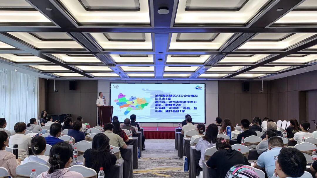 会议开始,沧州海关综合业务二科科长郭冬青对AEO政策进行了深入解读,着重强调了其在促进国际贸易便利化中的重要作用。他详细阐述了企业申请AEO认证的流程,并指出该认证能够帮助企业享受国内外通关的便利化措施,进而提高在国际市场中的信誉度和竞争力。