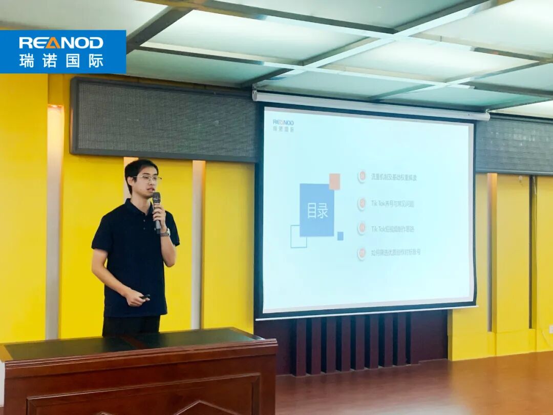 紧接着,瑞诺国际TikTok运营总监、互联网推广技术专家张奇老师进行了主题为《轻松玩转TikTok》的分享。张奇老师深入浅出的讲解方式,迅速吸引了全场参会人员的注意。他首先介绍了TikTok的流量机制及基础权重,让大家对TikTok的算法逻辑有了初步了解。随后,他详细讲解了账号内容定位和素材获取的方式,强调了内容为王的重要性,并分享了多种高效获取素材的途径。张奇老师还通过具体案例分析,分享了如何筛选优质对标账号,梳理了爆款视频的逻辑性,让参会者直观感受到优质内容的力量。他鼓励大家要敢于创新、勇于尝试,不断挖掘自身特色,打造具有差异化竞争优势的TikTok账号。