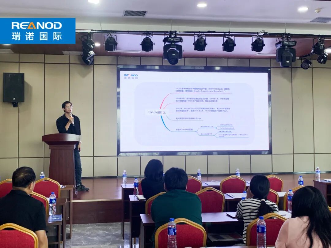 紧接着,瑞诺国际TikTok运营总监、互联网推广技术专家张奇老师带来了“轻松玩转TikTok”的主题分享。张老师深入解析了TikTok的流量机制及基础权重,传授了账号内容定位、素材获取的方法秘诀,并详细讲解了对标账号筛选以及爆款视频逻辑性梳理等内容。这些内容不仅提升了学员们对TikTok这一新兴社交平台的认知,更让大家深刻感受到了TikTok的巨大潜力。