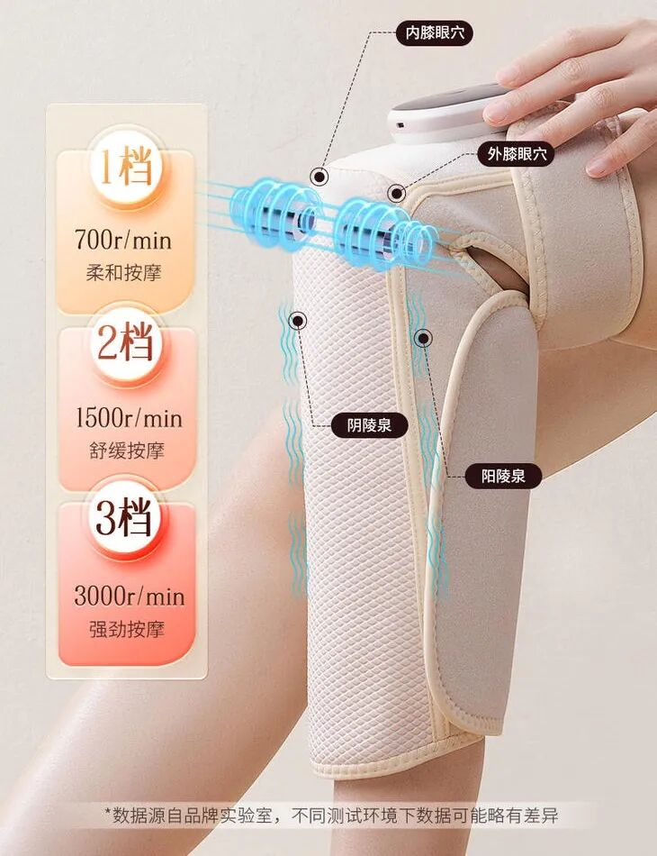 把按摩器戴在膝盖上,开启振动按摩,就像有一个很有道行的老师傅一样,他的双手一下一下地按摩你的内外膝眼穴,关节压力瞬间放松下来。