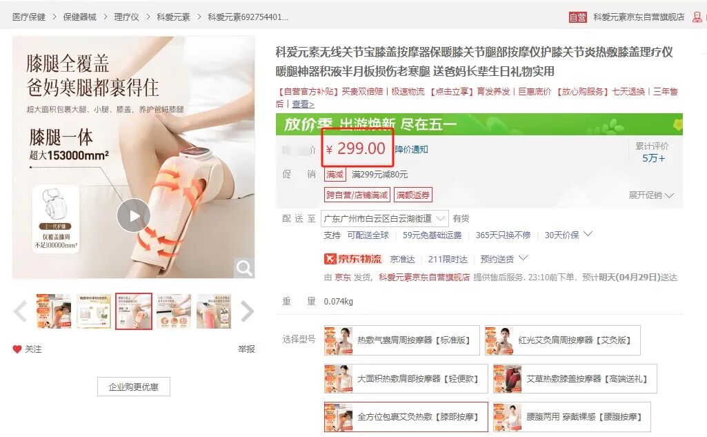 某东官方同款关节按摩器售价高达299元一只,来我们这里买享受近六折优惠价,只要¥199 就可以带回家!手慢无~